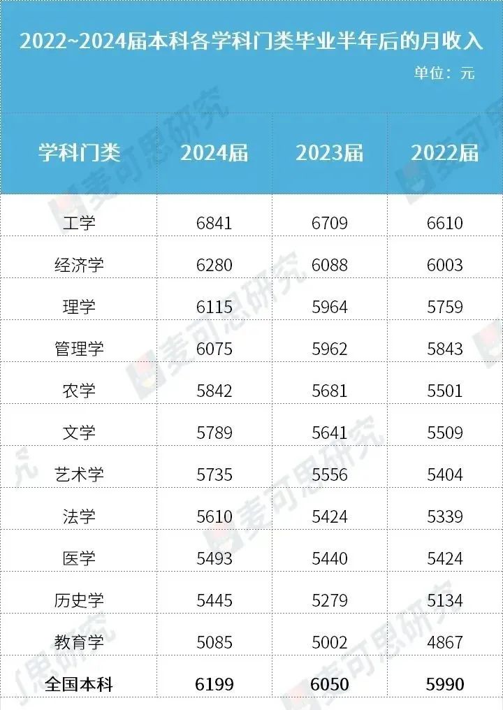 根据就业蓝皮书数据,2025年月收入较高的10个本科专业分别为:信息安全(7599元)、微电子科学与工程(7282元)、电子科学与技术(7215元)、自动化(7108元)、软件工程(7092元)、材料成型及控制工程(7077元)、光电信息科学与工程(7076元)、电子信息科学与技术(7058元)、机械设计制造及其自动化(7051元)、机械电子工程(7018元),其月收入均远超本科平均水平(6199元)。本科高薪前十专业全部为工学。