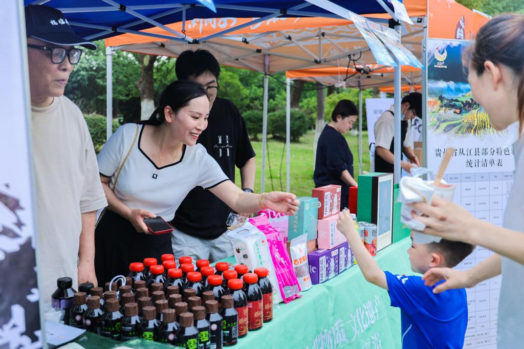 6月14日下午,由从江县农业农村局以及校后勤管理处、团委、生命科学与健康工程学院联合组织的从江县农副产品展销现身校2025毕业集市。现场展示了瑶浴浴粉、瑶浴浓缩液、百香果气泡水、百香果果干、从江香禾糯、从江紫米等从江特色农产品二十余款,为从江县农副产品提供了宣传与推介的平台,为当地乡村产业振兴注入新的活力。