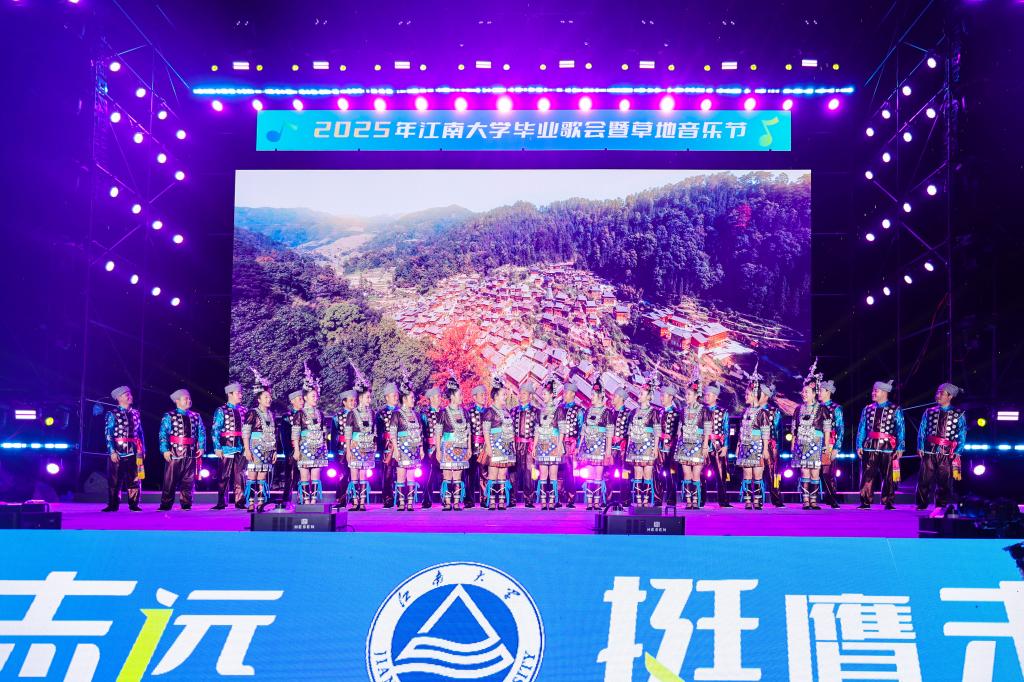 6月14日晚,从江县民族艺术团以一曲侗族大歌《歌唱新时代》亮相2025江南大学毕业歌会暨草地音乐节,为即将毕业的学子们送上最真挚的祝福,凭借多声部、无指挥、无伴奏的原生态精彩演唱成为毕业歌会上一道亮丽的风景线。据悉,侗族大歌被联合国教科文组织列入人类非物质文化遗产名录,并曾参与电影《哪吒2》的人声配乐创作。