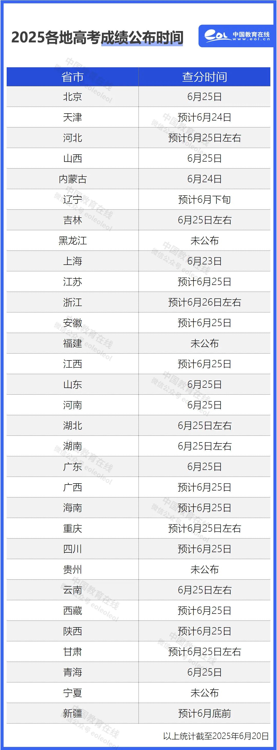 预计于6月25日晚公布各批次录取控制分数线和考生成绩。