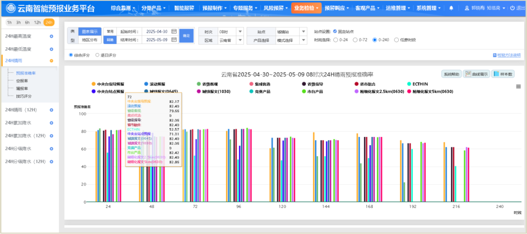图为云南省智能预报平台下各家模式预报省-市-县实时检验功能 供图:云南省气象局