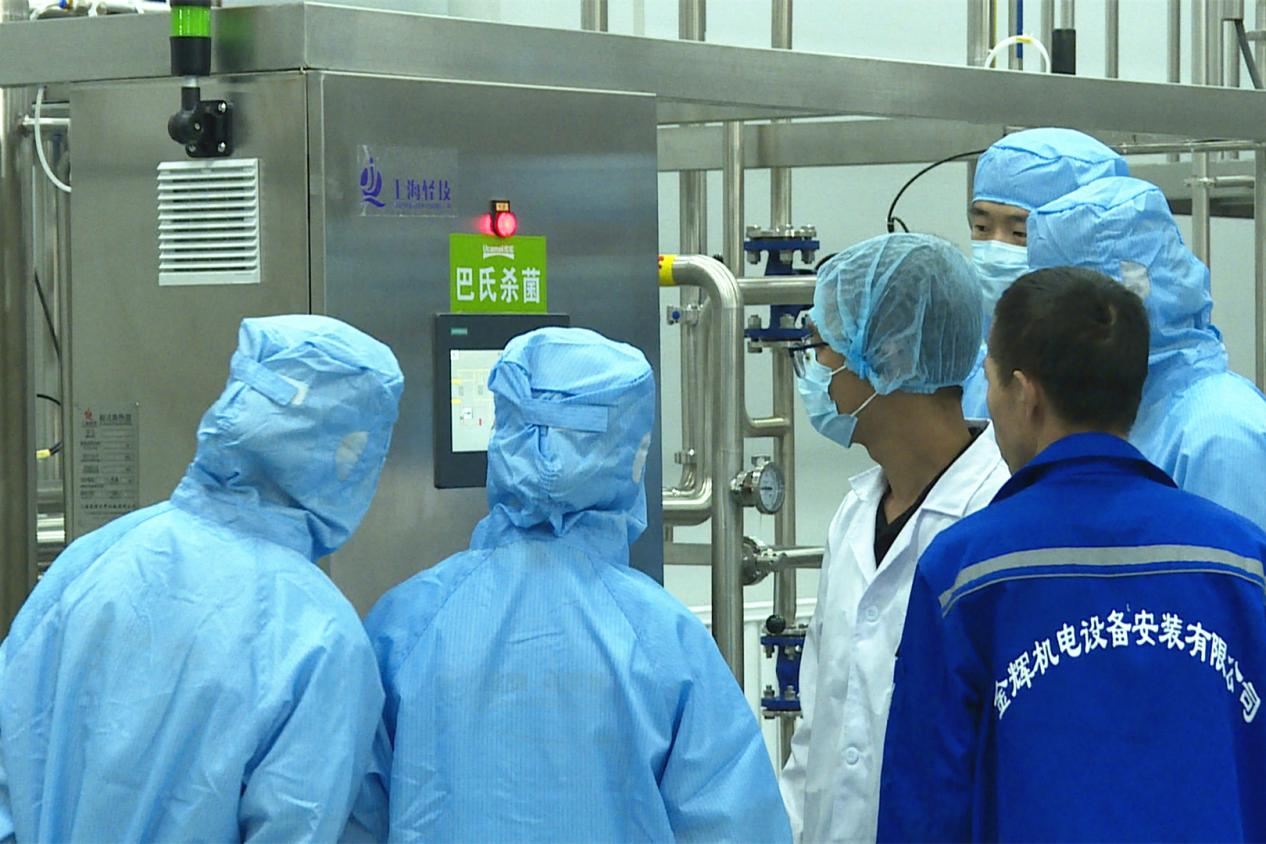 6月19日,在木垒县优驼长眉驼乳业有限公司,技术人员正在检测设备,确保设备以最佳状态投入驼奶制品生产。王梦君摄