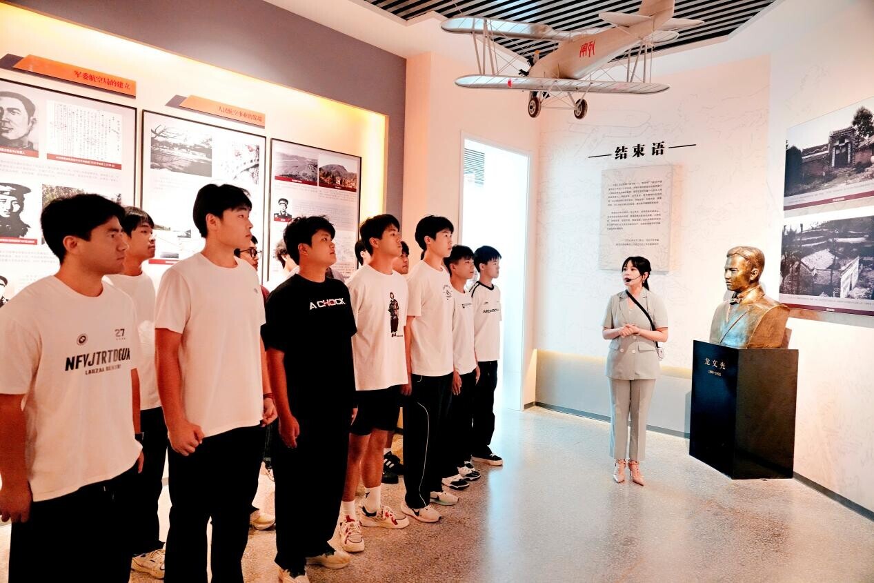 “根据每门思政课程的性质、内容和教育教学目标,根据职业技术学院学生的知识基础、专业特点、未来就业岗位的职业要求,结合中心场馆的50个教学点,每门课至少选择10个场内教学点,可以说这是我们学校的红色引擎,是同学们学习专业知识、强化职业素养的动力之源!”信阳航院党委副书记、监事会主席、常务副校长马聪说。