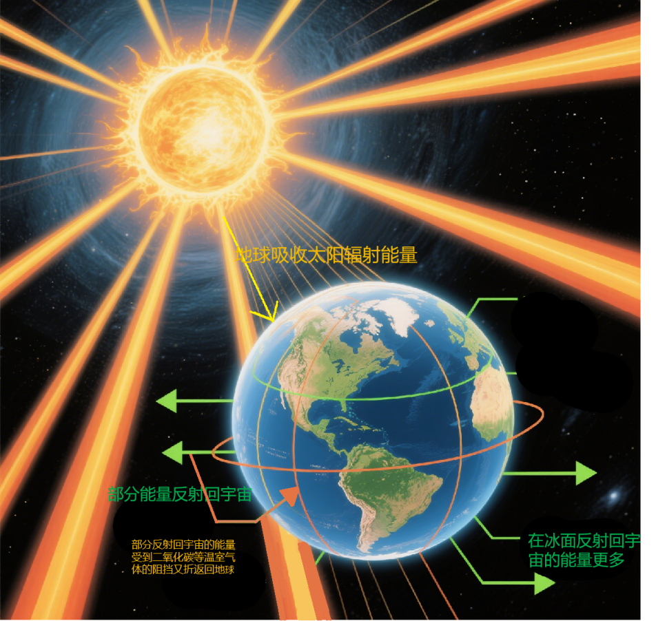 温室效应和“冰-反射率反馈”示意图