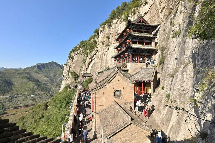 10月3日,游客在位于河北省邯郸市涉县的娲皇宫景区游览。新华社记者 李鑫 摄