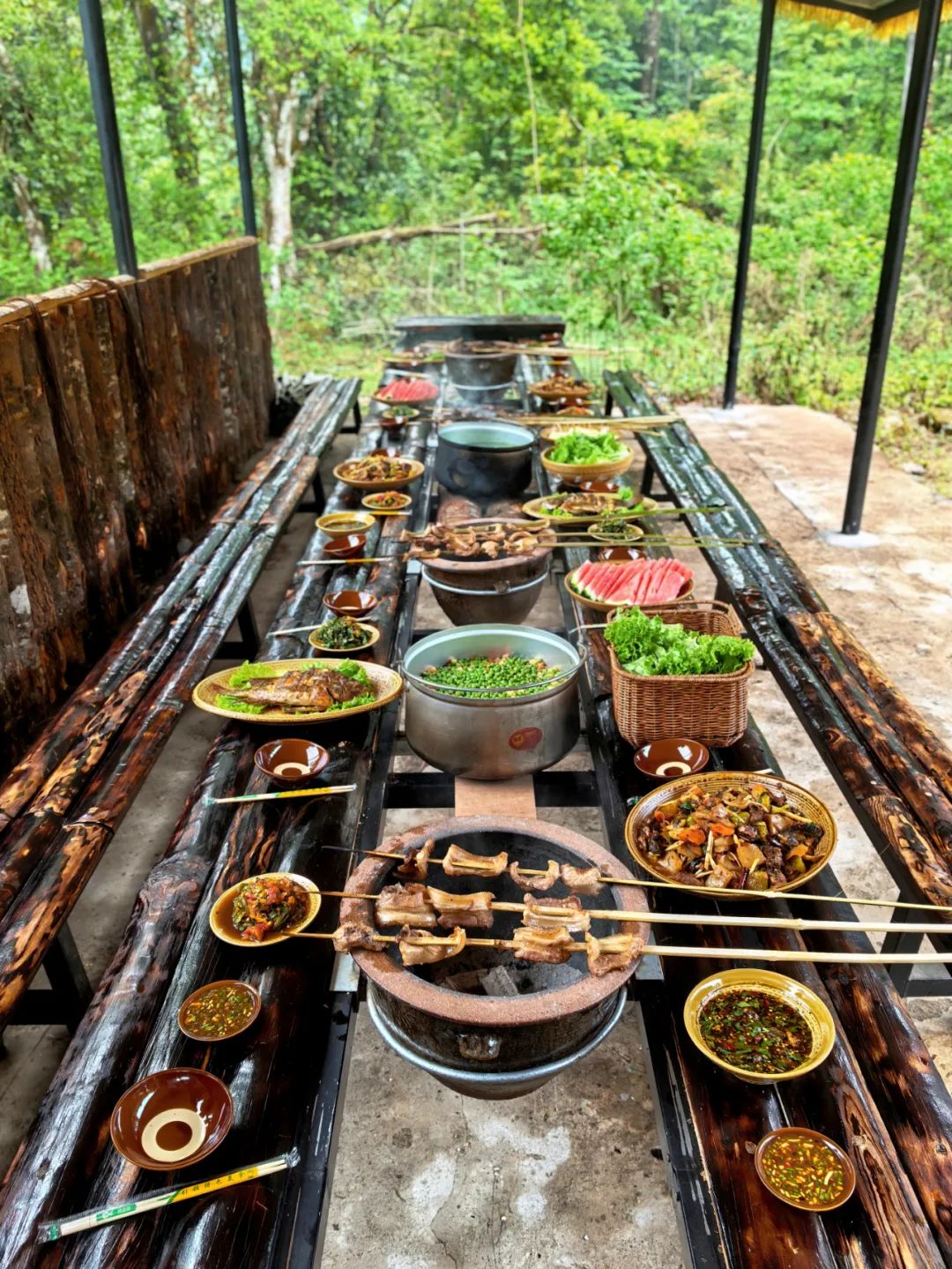 徒步途中设有溪谷厨房用餐点。在这里,你可以品尝到当地特色的美食,铜锅饭、烤串、溪谷小果、雷响茶等。在大自然的怀抱中,享受一顿美味的午餐,让味蕾与心灵一同得到满足。