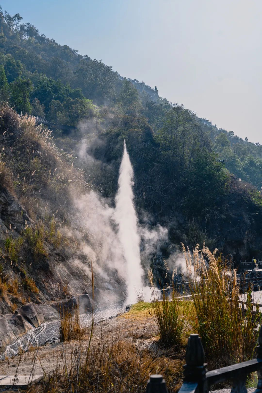 腾冲温泉出水量大,热海的高温高压喷泉、汽泉、沸泉高度集中,涌水量大,在世界名列前茅。
