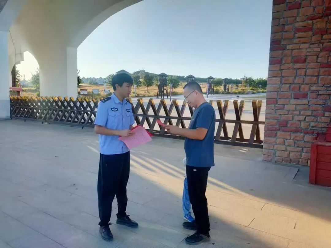 阿旗公安局天山城郊派出所深入汉庭文化园,向游客开展生动有趣的反诈宣传活动,通过面对面讲解电信网络诈骗的常见手段、特点、种类、危害性及防范技巧等内容,普及反诈的相关法律知识,引导大家做到“不听、不信、不转账、多核实”,并提醒游客保护好证件信息、手机号码、银行卡等私人信息,树立反诈骗意识,提高对电信诈骗的防范、鉴别和自我保护能力。
