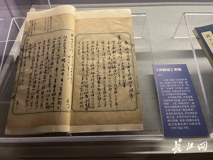 展览展出了杨守敬金石学理论著作,如《评碑记》手稿、《评帖记》手稿、《学书迩言》手稿。其中《学书迩言》是杨守敬晚年的重要书论著作。1911年,时年73岁的杨守敬避居上海,应日本弟子水野元直(字疏梅)求学书门径之请,在手头碑版、集帖,因辛亥革命皆陷武汉的情况下,仅凭记忆撰写了此书。