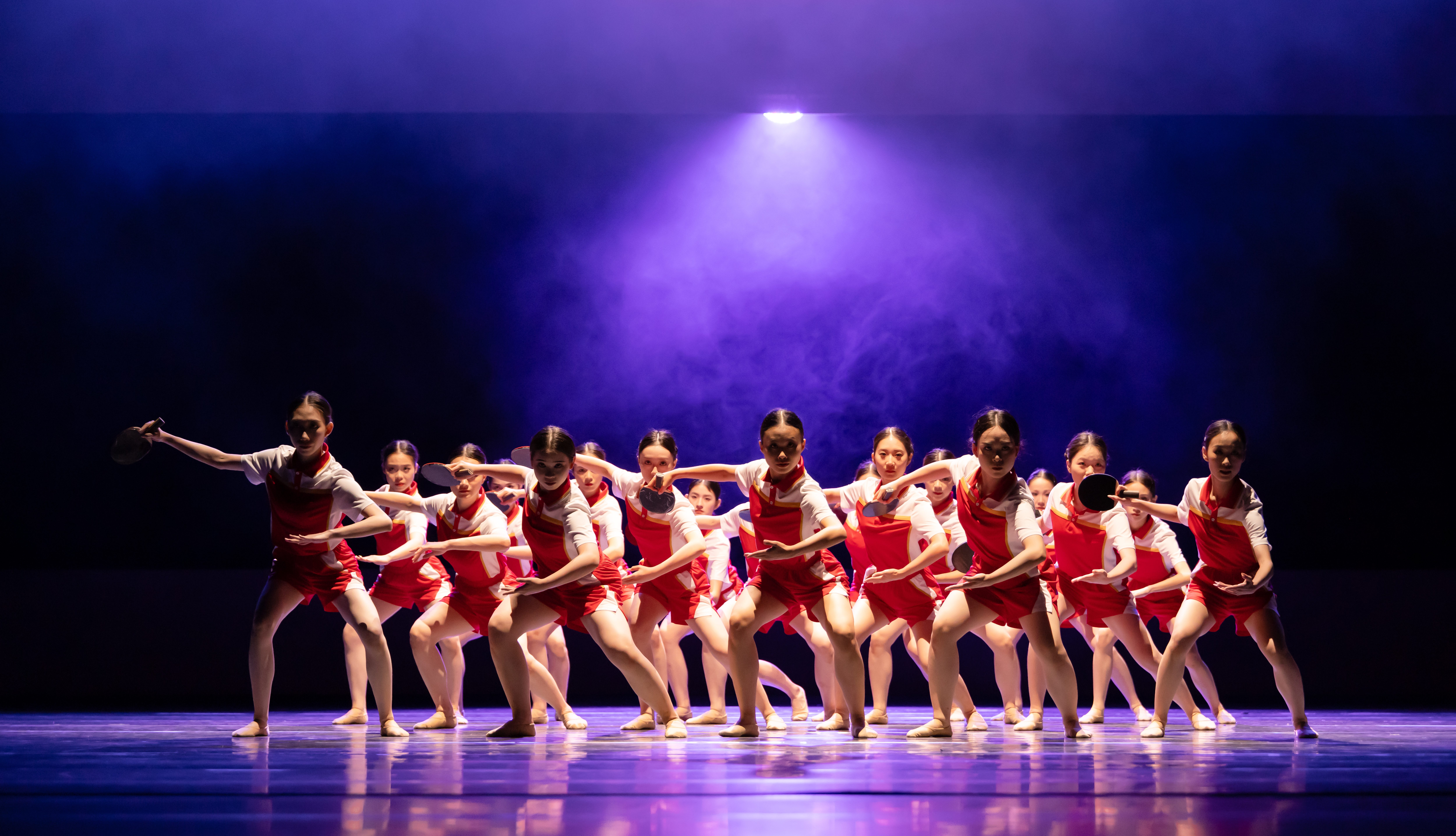 《人生能有几回搏》是全国首部体育主题舞剧,由广州体育学院优秀师生团队精心创排。师生团队通过精湛的舞蹈编排和动人的音乐旋律,将容国团的拼搏奋斗故事与拳拳赤子之心熔铸于舞台演绎之中,并以精妙绝伦的肢体叙事,将容国团训练场上的汗水、赛场上的孤勇、胜利时的狂喜与深埋心底的家国情怀,编织成一幅幅动人心魄的生命画卷。舞者躯体的每一次腾跃、伸展与凝定,恰如其分地展现了竞技场上电光石火般的爆发、绝处逢生的坚韧和百折不挠的意志,体现出创编团队从对“更高、更快、更强”外在极致的仰望,转向对“更美、更哲学、更共情”的生命内在宇宙的深度勘探。