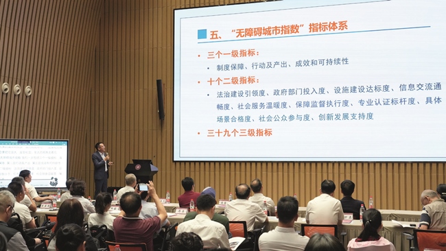 深圳大学残障研究中心二级教授、执行主任周林刚在解读“无障碍城市指数”指标体系。