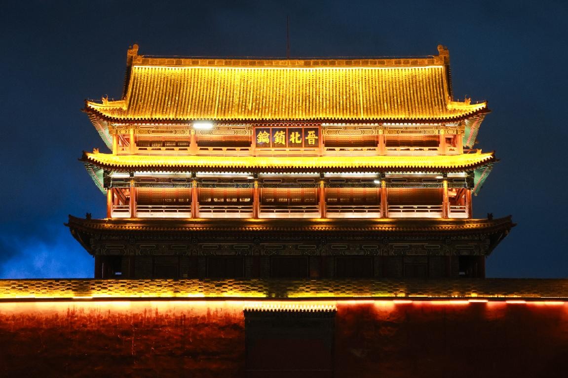 华灯初上,渐次亮起的灯光将街道点成了金色,流角飞檐也被勾勒得更加精致,夜晚的忻州古城味道更加醇厚。当晚,虽有小雨,但忻州古城的游客络绎不绝,代表团一行走街串巷,实地感受秀容古城的“烟火气”。