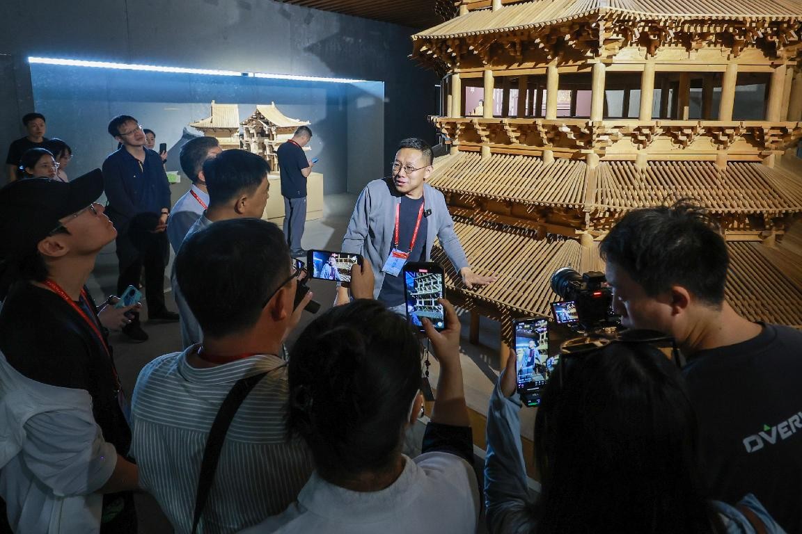 随后,网络名人一行来到定襄县宏道镇,这里坐落着晟龙木雕古代建筑模型展示馆,是全国重要的木雕古建筑模型生产基地。在这里,山西的应县木塔、华严寺、晋祠圣母殿以及中国四大名楼等不可移动的古建,变成可携带、可拆组的木雕模型,让大家可近看、可触摸、可互动,一站式了解木构古建筑代表。