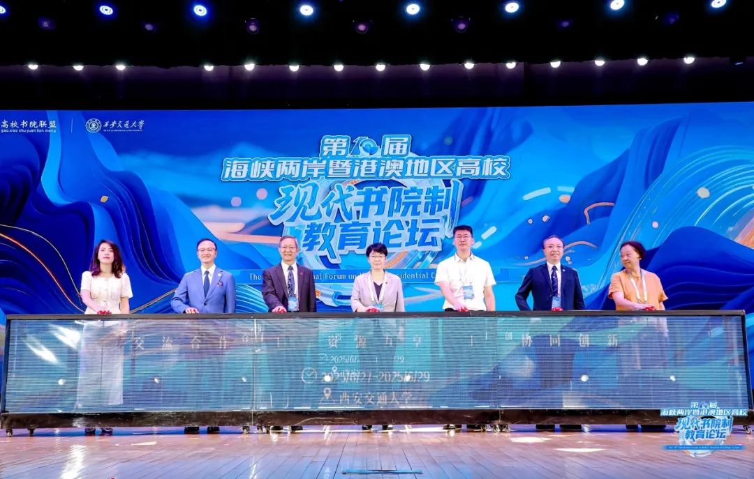 论坛开幕式于6月28日上午在西安交通大学兴庆校区宪梓堂举行。孟宪承书院院长吴薇与联盟其他六常任理事单位代表共同启动论坛“点亮仪式”,象征两岸四地教育同仁携手擘画书院建设新蓝图。