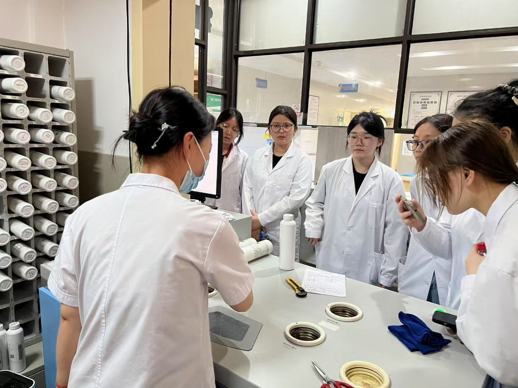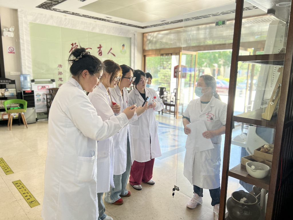 为了更深入地开展调研,该实践队转赴余姚市中医院河姆渡分院深化调研了河姆渡药食同源动植物临床实际使用情况。在该医院,该实践队成员先后了解了“传统中药房”和“智能化中药房”。在中药房内,酸枣仁、桃仁、水牛角、鳖甲等一排排智能调配柜吸引了实践队员的目光。更有专业的黄娜丹中药师现场演示智能配药系统,从导入电子处方最终封装成独立剂量的药包,从传统中药饮片经现代技术转化为标准化颗粒,整个过程流畅高效。传统中药与现代科技的深度融合,大家纷纷感叹中医药在新时代的创新发展速度,同样的健脾药材,从作为食物陶罐贮藏到作为药物智慧管控,不变的是药食同源的本质。
