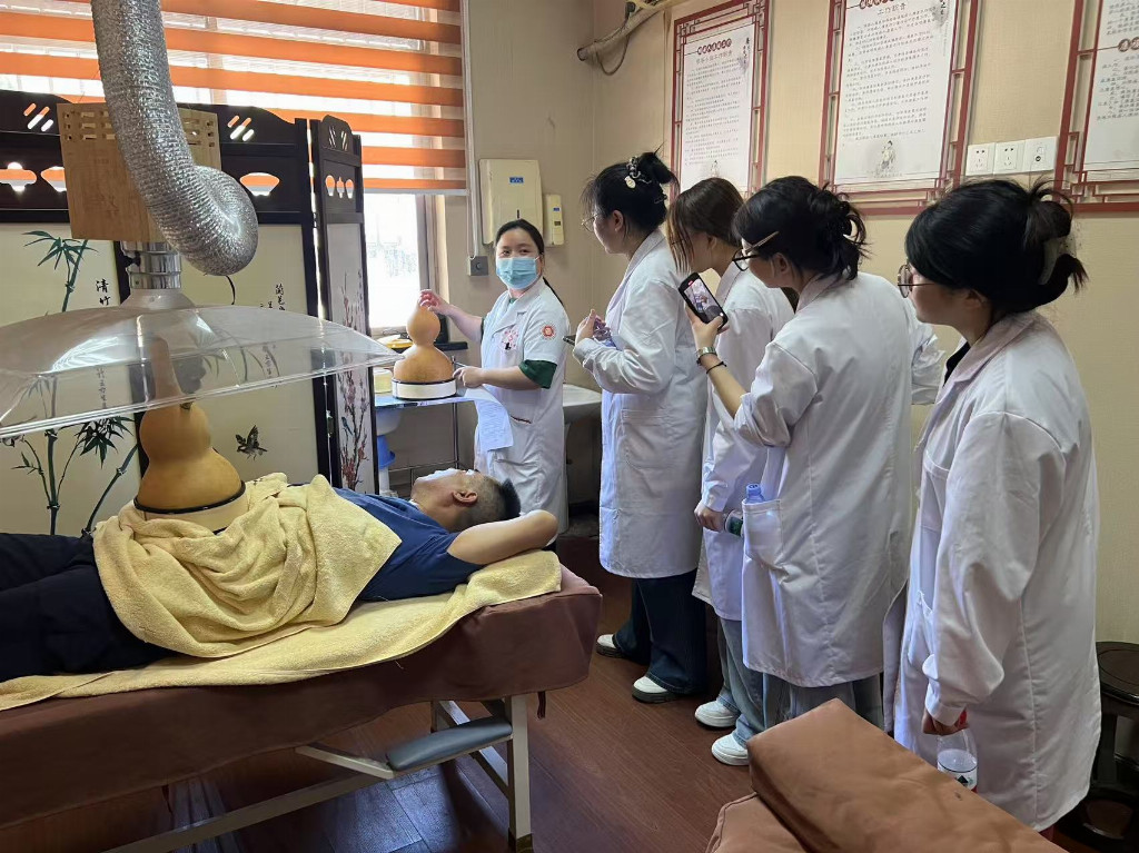 在中医适宜技术治疗室,葫芦灸的操作正在进行,“先民食用葫芦籽利水消肿,团队则利用葫芦的容器属性创新疗法。这些葫芦内放置艾柱,热力均匀渗透,你们在遗址看到的炭化葫芦籽,七千年后演化为温经通络的载体。”将艾柱嵌入葫芦后对患者进行葫芦灸,温热感使患者腰部肌肉逐渐松弛。“从《本草纲目》‘壶卢煎汁滴鼻’到现代葫芦灸,器物应用之变承载着不变的调和人体的智慧。”王逸之介绍。