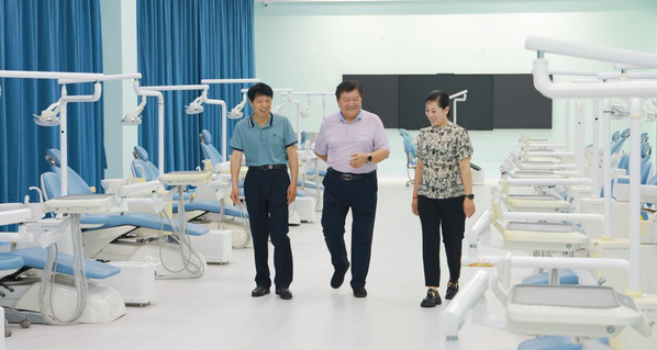 调研期间,石忠一行实地参观了学校图书馆、元宇宙创新实验室、虚拟仿真教学中心以及医护学院等场所,实地了解了学校近些年来在教学环境、科研发展、技术创新等方面的建设成果,对学校育人环境和发展态势给予高度评价。