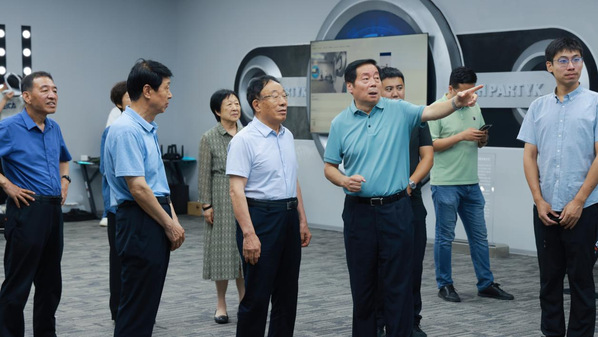 调研期间,任露泉一行实地参观了学校元宇宙研究院、虚拟仿真实训室及新建院区,围绕技术实现路径、平台开放机制、高校资源整合等方面提出了专业建议和指导意见。