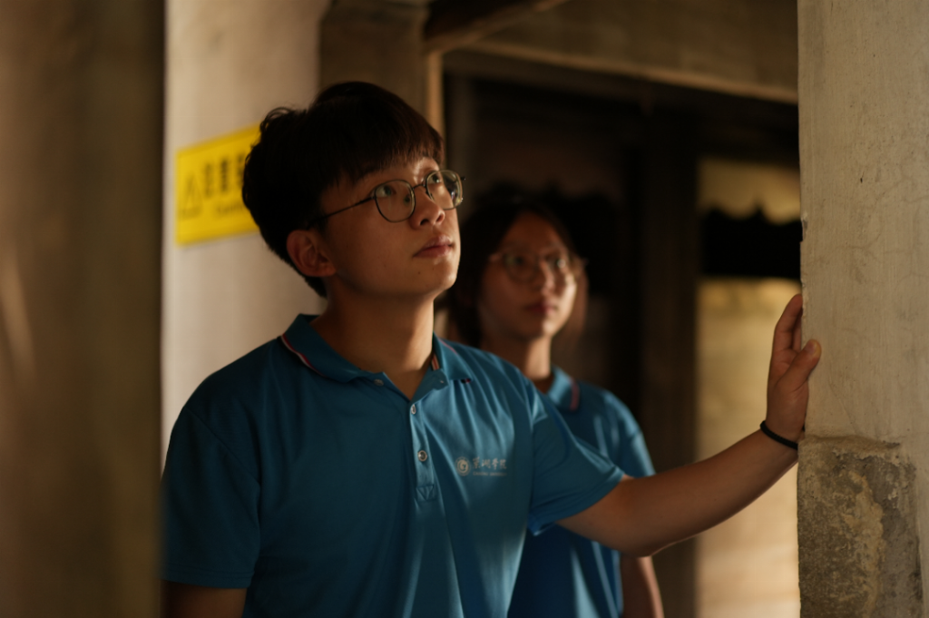 绩溪三雕博物馆内,砖雕的浑厚、木雕的精巧、石雕的雄浑构成视觉交响。文庙飞檐下,来苏社区文化驿站的展架上,三雕纹样化作折扇、书签的装饰元素—— 古老技艺借现代设计“破圈”,成为连接乡村与城市的文化纽带。实践团记录展品时发现,文创设计中“非遗+生活”的融合,正为文化传承打开新通道。调研中,溪马村唐书记坦言:人才外流、劳动力短缺与教育受限,是乡村振兴亟待突破的瓶颈。实践团成员走进社区辅导儿童课业,以微小行动助力乡土人才培育,呼吁更多青年回流赋能家乡。