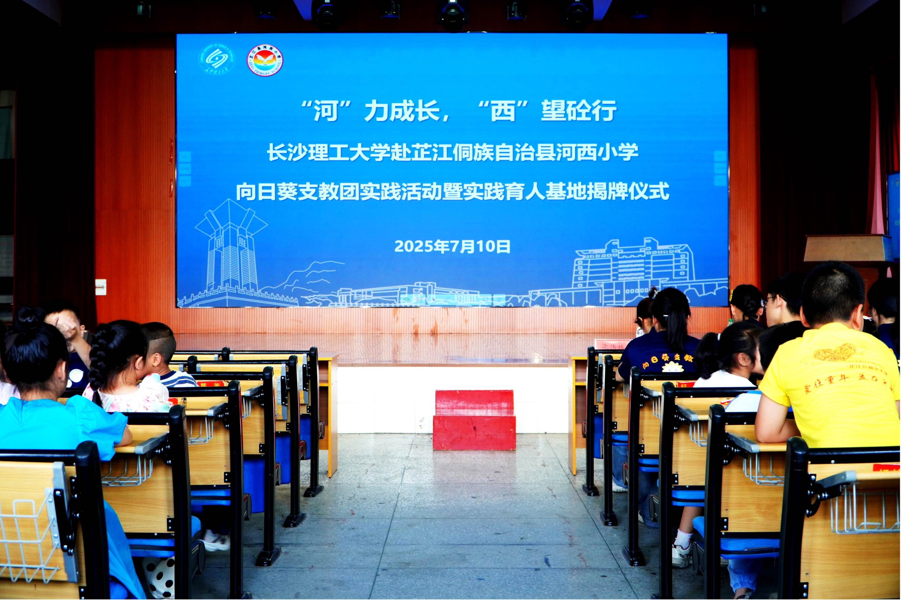 7月10日,长沙理工大学向日葵支教团赴芷江侗族自治县河西小学开展实践。在实践启动仪式上,长沙理工大学土木与环境工程学院、芷江侗族自治县河西小学相关负责人共同为“长沙理工大学土木与环境工程学院实践育人基地”揭牌。
