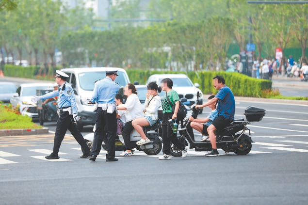 交警对非机动车交通违法行为进行现场执法。