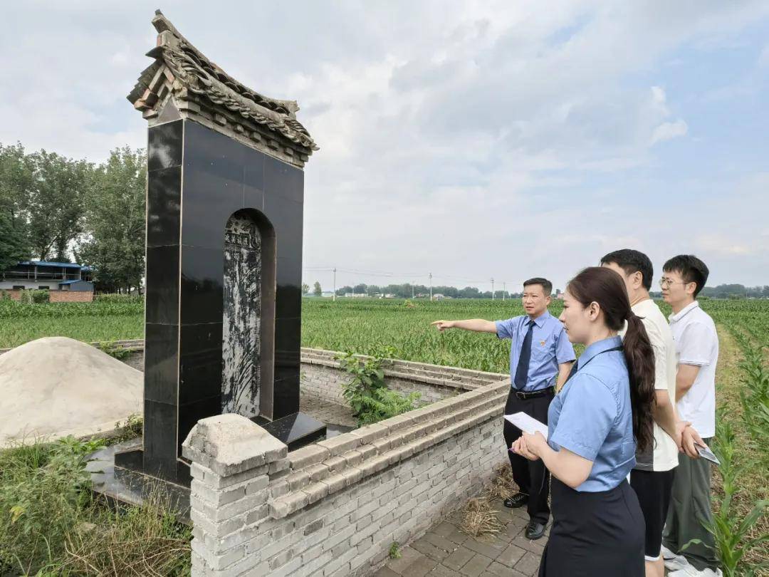 河南省漯河市源汇区检察院干警对蔡永令烈士墓碑修缮情况进行“回头看”。