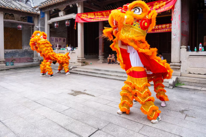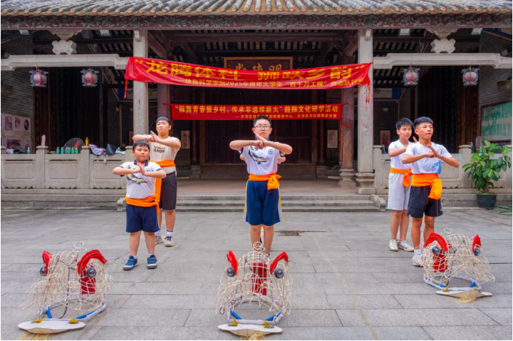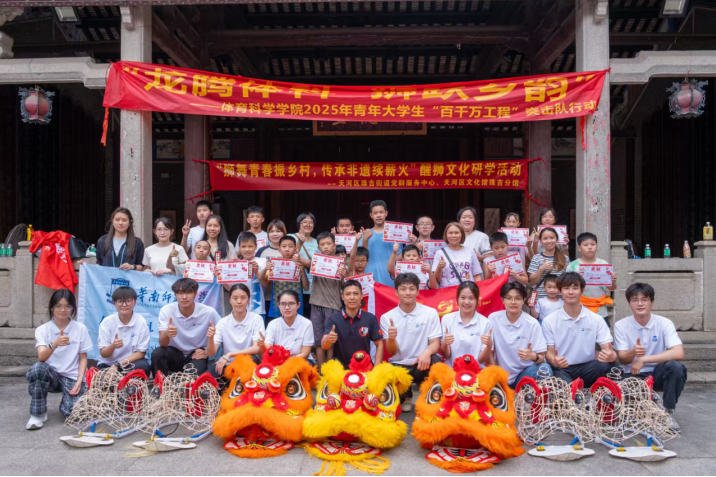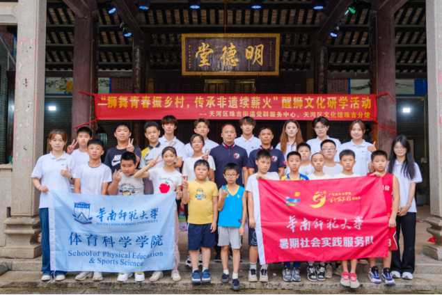 近日,华南师范大学、广州市天河区珠吉街道、天河区龙狮运动协会、珠村文华弘义堂龙狮团联合在广州市天河区珠吉街道开展2025年青年大学生“百千万工程”突击队行动“龙腾体科·狮跃乡韵”活动。