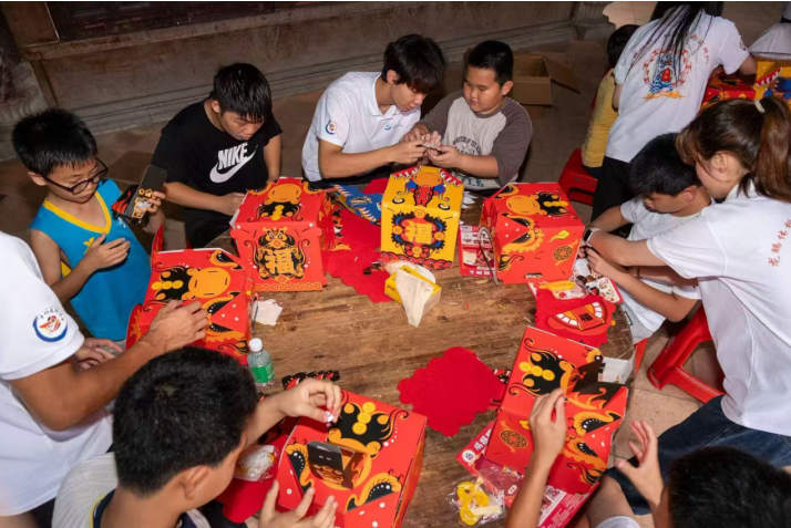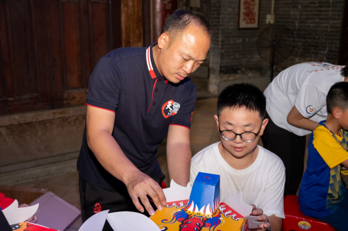 课后时光化身创意工坊。实践团带领青少年挑战折纸醒狮卡,以卡纸为媒,指尖翻飞塑狮形。从鬃毛层叠折痕到狮口开合机关,孩子们在精密折叠中感悟传统狮艺精髓。当平面卡纸“跃”成三维雄狮,非遗的灵动已悄然驻留心间。