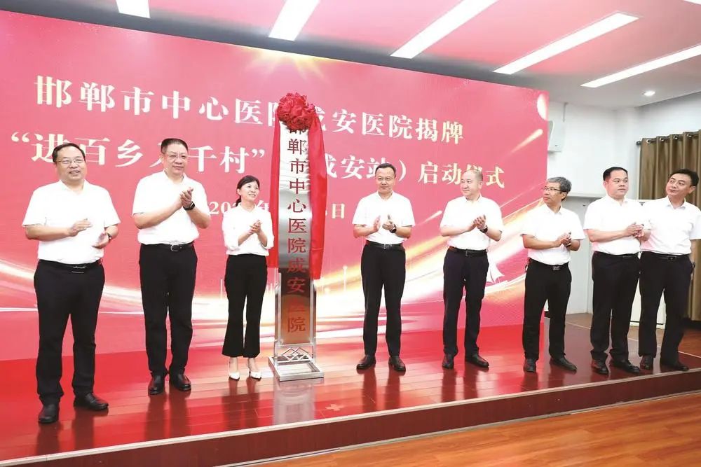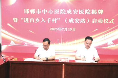 7月15日,邯郸市中心医院与成安县人民政府共建的“邯郸市中心医院成安医院”正式揭牌,同步启动“进百乡入千村(成安站)”活动。作为邯郸市中心医院在县域落地的第三家紧密型医联体,该项目将惠及成安46万群众,标志着该院“优质资源精准下沉”战略再结硕果。邯郸市卫健委主任李小静,邯郸市中心医院党委书记、院长武一平率专家团队参会,成安县委书记李东健、县长刘丙胜等共同见证。