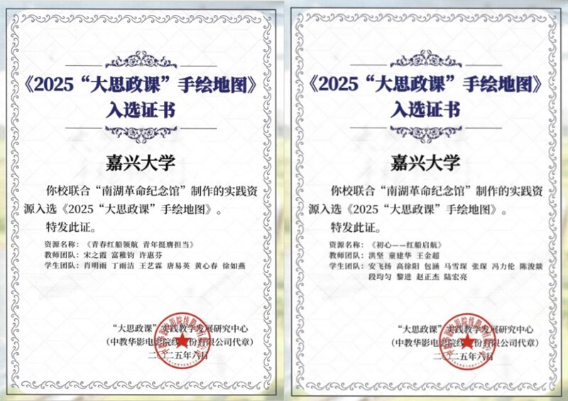 近日,嘉兴大学联合南湖革命纪念馆制作的《青春红船领航 青年挺膺担当》《初心——红船启航》2项教学资源成功入选教育部《2025“大思政课”手绘地图》,成为学校持续深化打造“真理的味道·红船旁的大思政课”品牌的又一重要成果。此次,浙江省仅有5所高校的教学资源入选。