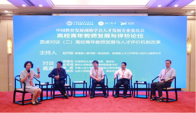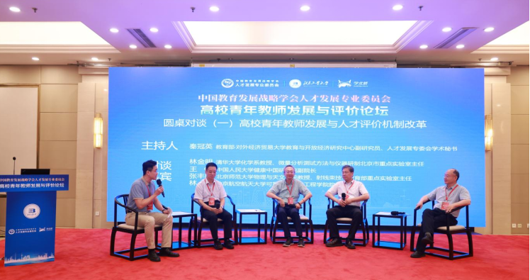 天津师范大学党委常委、副校长佟德志,清华大学新闻与传播学院党委书记史安斌,北京大学物理学院教授、海淀区科协副主席彭良友,中国人民大学物理学院吴玉章讲席教授季威,结合自身研究与实践经验,从人才培养、选拔机制、评价导向等维度深入探讨,为构建科学完善的青年教师发展与评价体系凝聚共识。