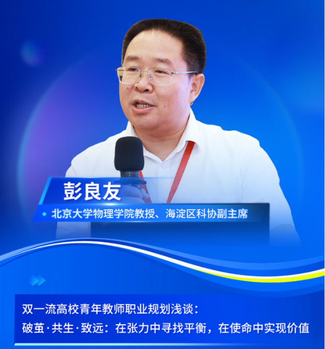 北京大学物理学院教授、海淀区科协副主席彭良友为青年教师职业发展提供了系统性建议。他结合其曾面临科研考核压力、教学与科研失衡等困境,提出“破茧·共生·致远”的成长路径:破茧即突破“唯论文”评价束缚,实现身份转化与认知升维;共生即平衡教学、科研、服务三重使命;致远即达成个人价值与国家发展的统一,旨在为青年教师提供职业发展指引,助力其在张力中平衡、在使命中实现价值。