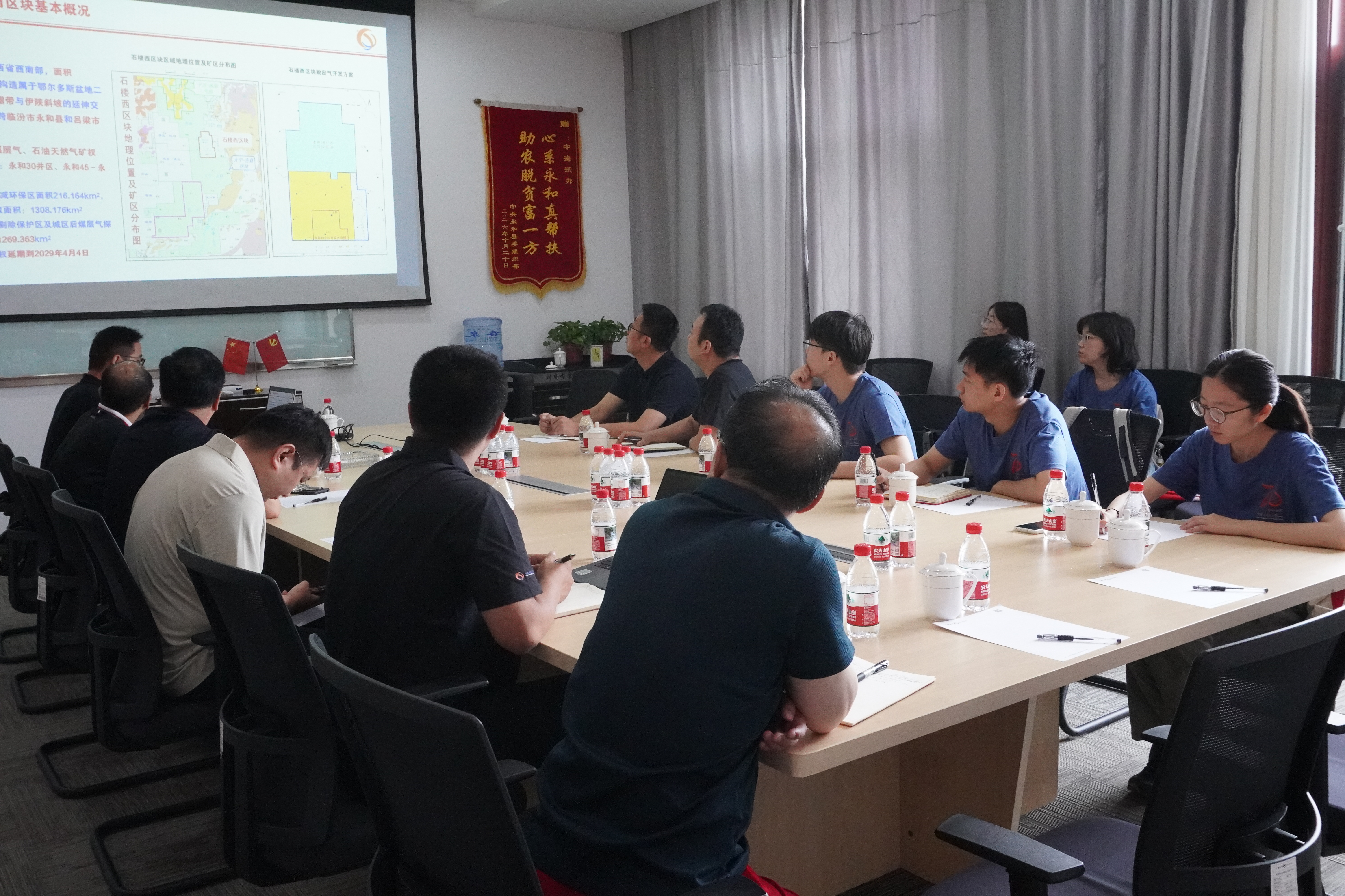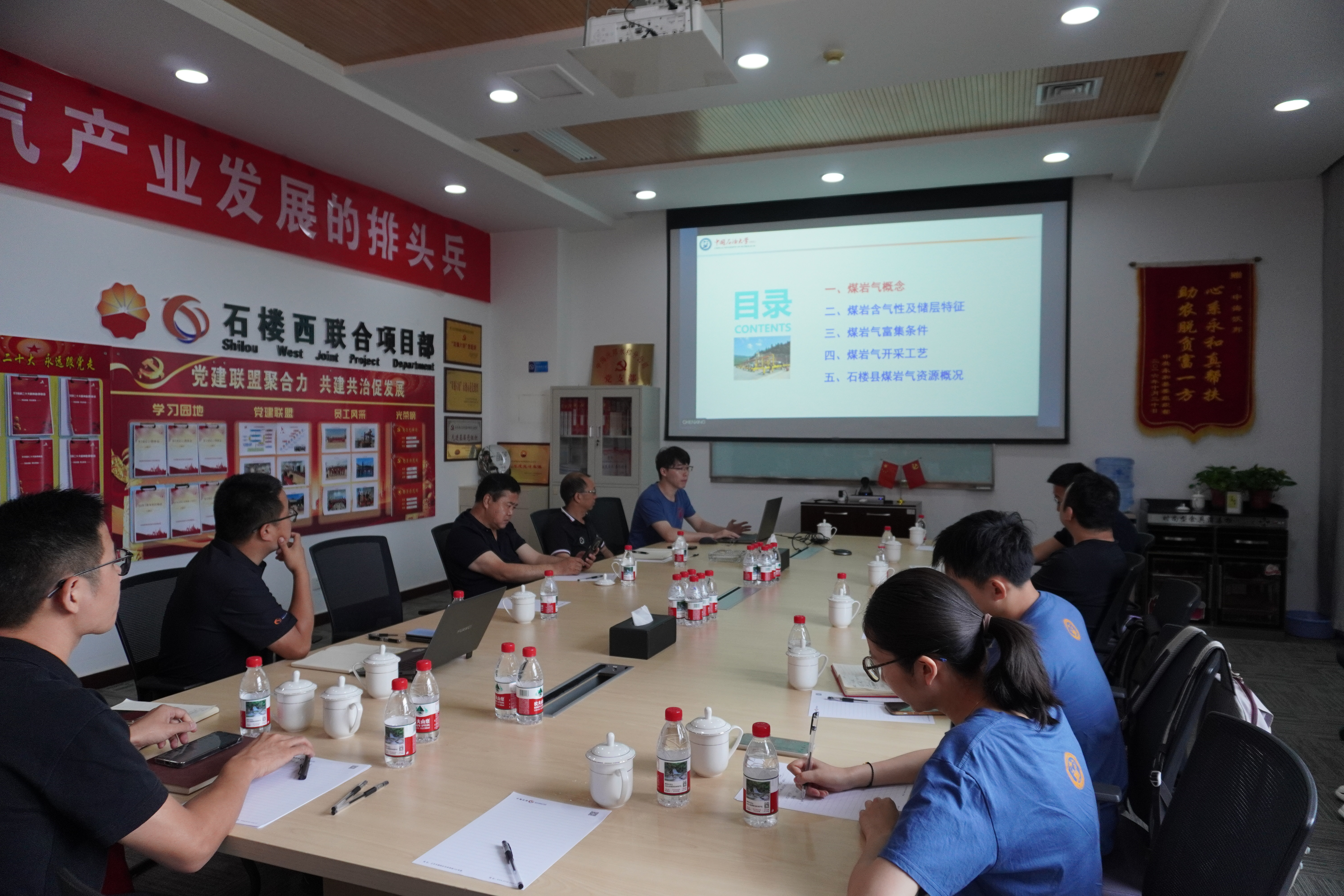 在中海沃邦能源投资有限公司石楼分公司,实践队指导老师、该校地球科学与技术学院徐尚教授和石油工程学院时贤教授与企业围绕低产煤岩气井进行了深入技术交流,实践队学生代表以“煤岩气富集基本理论与资源有效利用”和“超临界二氧化碳压裂技术在非常规油气中的应用”为题汇报最新的科研成果。实践队还实地考察留村中心集气站,查看岩心样本,与技术人员交流了解当地煤岩气勘探开发情况。