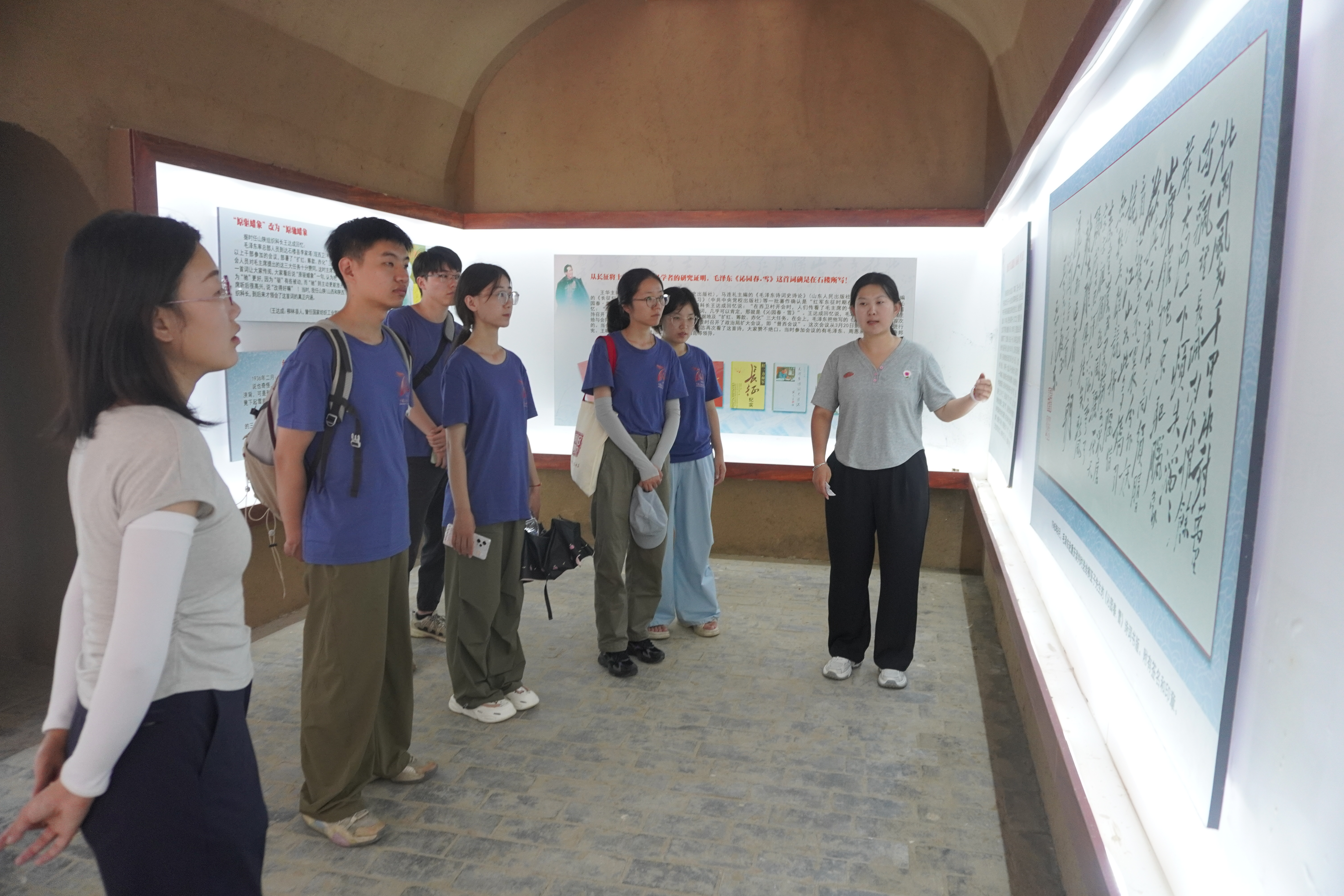 走进毛主席路居地,简陋的窑洞陈设无声诉说着峥嵘岁月。当队员们驻足于一张斑驳的书桌前,讲解员深情讲述,“在闪烁的油灯下,毛主席写下了气吞山河的《沁园春·雪》。”