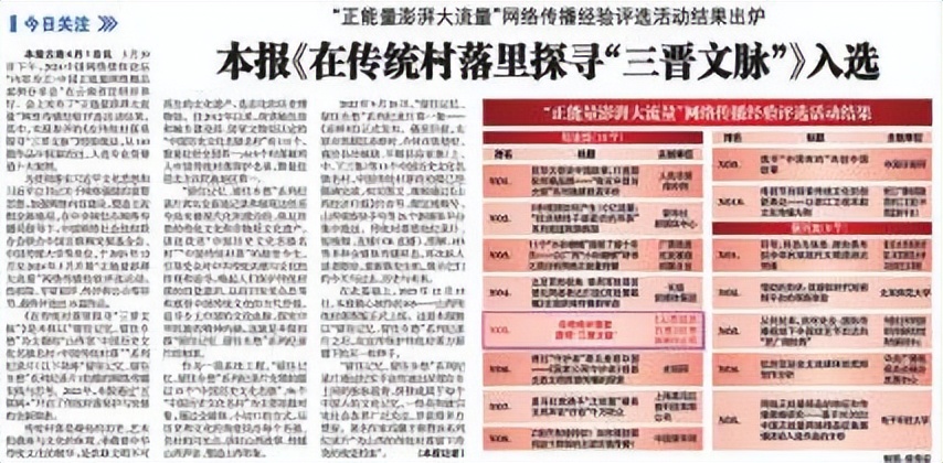 这并非山西经济日报社首次在纪录片领域获奖。2023年,报社拍摄的以“留住记忆、留住乡愁”为主题的“中国历史文化名镇名村·中国传统村落”系列纪录片,荣获山西新闻奖一等奖。