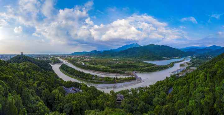 点开短视频《都江堰》,不徐不疾的女声画外音立马引发观众的关注欲。随着画面的腾挪转换,视频主角——都江堰水利工程款款而来。