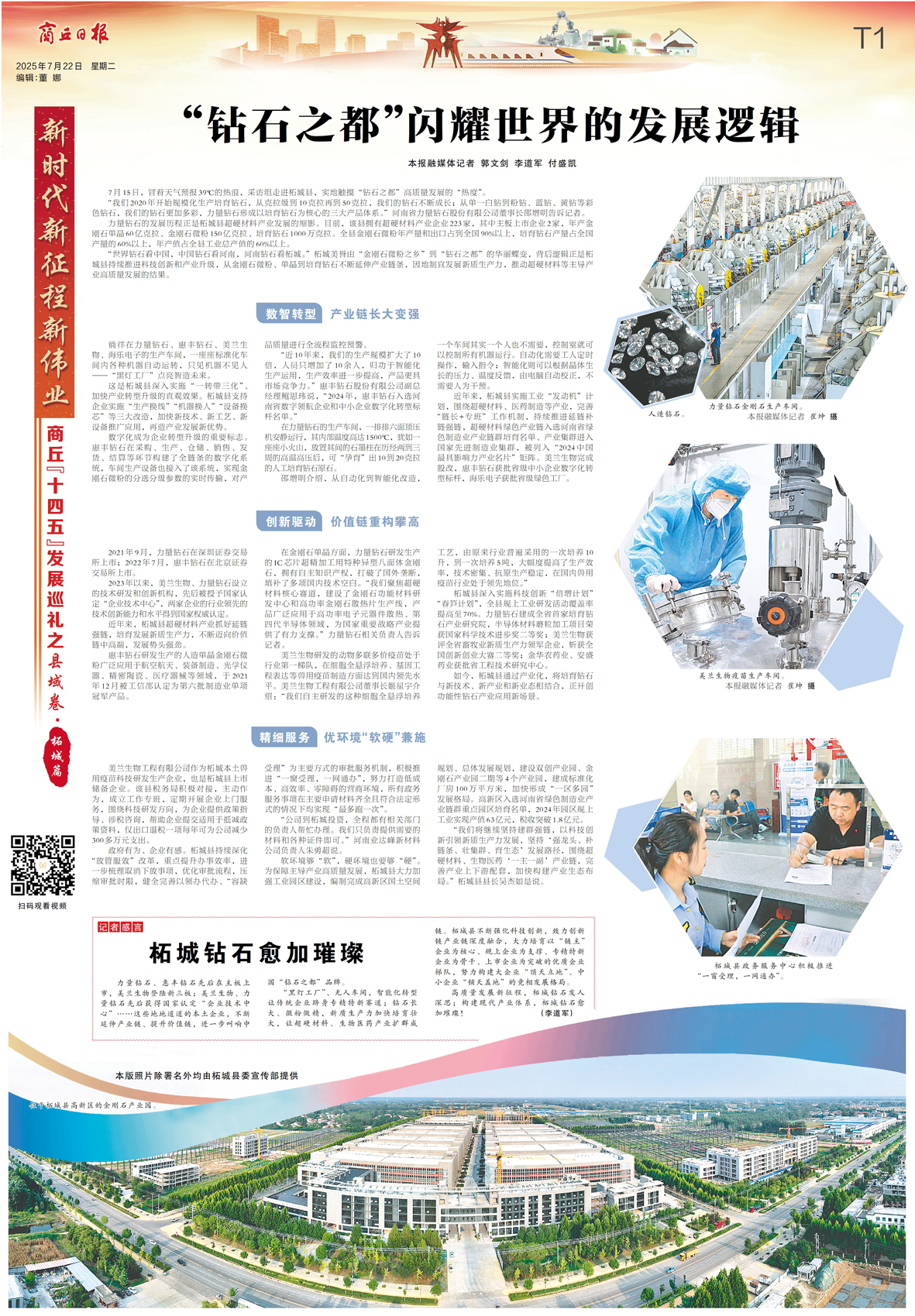 2025年7月15日,河南省商丘市“十四五”发展巡礼报道采访组冒着天气预报39℃的热浪走进柘城县,实地触摸“钻石之都”高质量发展的“热度”。