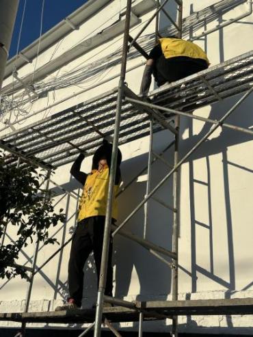 作为本次实践的重头戏,团队精心策划并实施了主题墙绘创作项目。活动前期,团队与朱刘西村村委紧密协作,实地考察并最终选定村内6面核心墙体。在村委的大力支持和提供的脚手架等安全保障下,队员们不畏酷暑,分组协作,挥洒青春汗水与艺术创意。