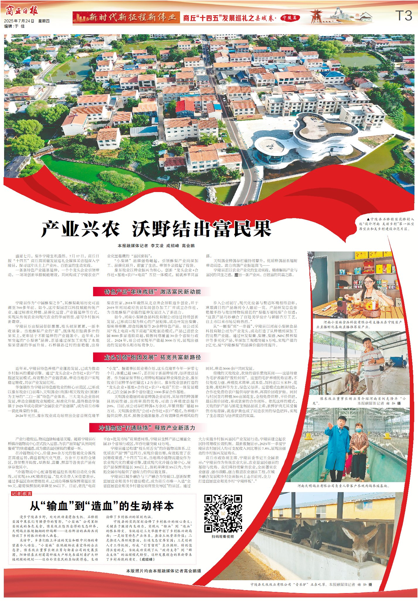 盛夏七月,梨乡宁陵生机盎然。2025年7月17日,商丘日报“十四五”商丘高质量发展巡礼全媒体采访组深入河南省商丘市宁陵县,探寻这片沃土上产业兴、百姓富的生动实践。