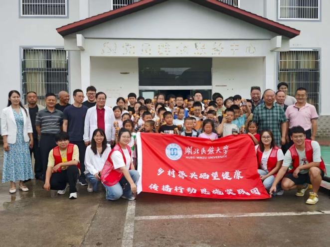 7月23日,湖北民族大学乡村振兴硒望健康传播行动恩施实践团联合武汉大学哲学学院“彩虹”服务队与三峡大学文学院研究生实践调查志愿者,走进恩施州巴东县野三关镇穿心岩村,以“青春赋能 乡村振兴”为主题开展实践教育活动,将健康知识、爱心关怀与文化滋养精准送达基层,为乡村振兴注入活力。