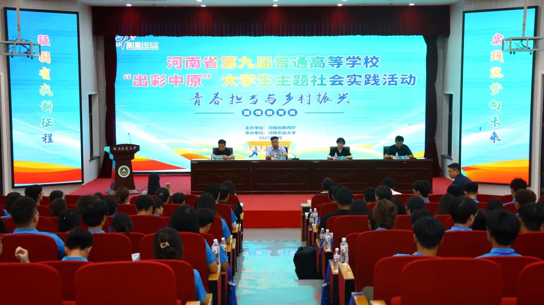7月14日,河南省第九届“出彩中原”大学生主题社会实践活动开班仪式在河南农业大学龙子湖校区顺利举行。校党委学工部部长徐峰致欢迎词并提希冀,师生代表分享交流。最后十大实践团队亮相,校领导授旗。