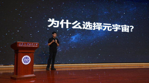 在研究院两周年发展回顾与展望环节,学校元宇宙研究院院长于卓从“为什么选择元宇宙”这个问题展开,系统阐述了研究院的创立初心和发展足迹。他指出,元宇宙并非孤立技术,而是能深度融合未来前沿产业的关键平台,包括人工智能、脑机接口、低空经济、商业航天、可控核聚变和新材料等领域,这种融合潜力是研究院的核心驱动力。随后,于卓介绍了合伙人和创始团队的组建过程,从创立初期的艰辛到如今的标准化规模化发展。他坦言,“最大的喜悦不是取得的各项成果,而是陪伴研究院一路同行、高速成长、铁一般凝聚的团队精神”。团队平均年龄不足26岁,年轻而充满活力,成为研究院高速发展的引擎。