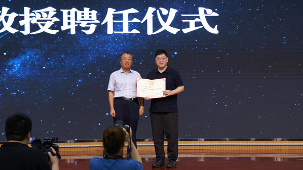在教授聘任环节,孙承武校长分别为刘天涯、张斯伦颁发教授聘书。