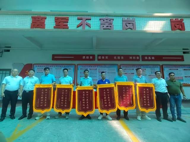 座谈会后,“东莞厚街-韶关翁源”退役军人服务新型帮扶协作领导小组成员为支持此次帮扶活动的爱心企业赠送锦旗,并合影留念,以感谢企业对退役军人事业的热心支持。