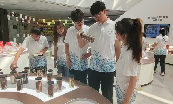 在“中国调料第一城”乐陵市杨安镇,实践团的队员们首先踏入了调味品博物馆。尚未走近展厅,一股复合着花椒的麻香、八角的醇厚、桂皮的温辛气息便悄然袭来,瞬间唤醒了对“味道”的感知。该馆展厅面积1300多平方米,通过图片、实物以及场景还原等形式,生动展示了杨安镇调味品产业从无到有、从小到大、从大到强的发展历程。队员们深入了解到,杨安镇的调味品产业已然成为当地经济发展的重要支柱,近千名村民在本地加工企业、物流站点实现就近就业,告别了背井离乡的务工模式,更催生了一批以调味品为核心的电商企业、文旅项目,让“小调料”成为激活乡村经济的“大引擎”。