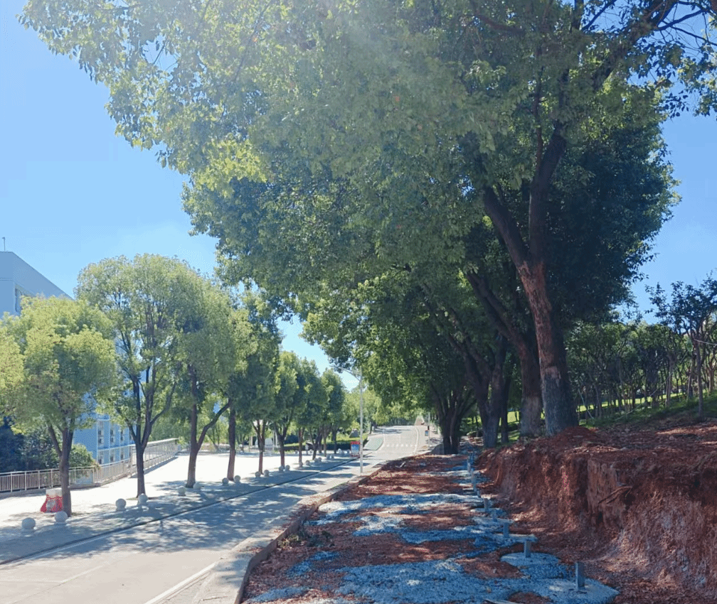 校园环境提升工程同样亮点纷呈。连接创意设计学院与实验教学中心的木平台栈道已建成投用,勤仁坡与实验教学中心的栈道也在施工中,古朴雅致的木质结构及彩虹顶棚与周边绿植相映成趣,将成为师生休闲漫步的新打卡点。此外,环山路实施拓宽硬化,影视传媒学院旁道路进行升级改造,有效解决了师生的通行及休闲问题。相关负责人介绍,此次改造注重生态性与实用性结合,未来还将沿路增补绿化植被,打造“一步一景”的园林式校园。