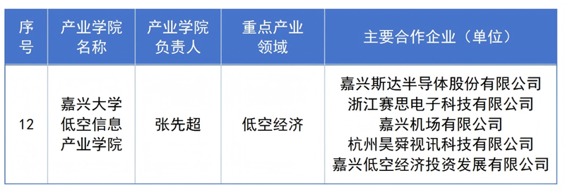 近日,浙江省教育厅办公室与浙江省经济和信息化厅办公室联合发布《关于公布2025年省级重点支持现代产业学院建设点名单的通知》,嘉兴大学申报的“嘉兴大学低空信息产业学院”成功入选。这是继清洁能源产业学院、智能装备产业学院后,该校获批的第三个省级重点支持现代产业学院。