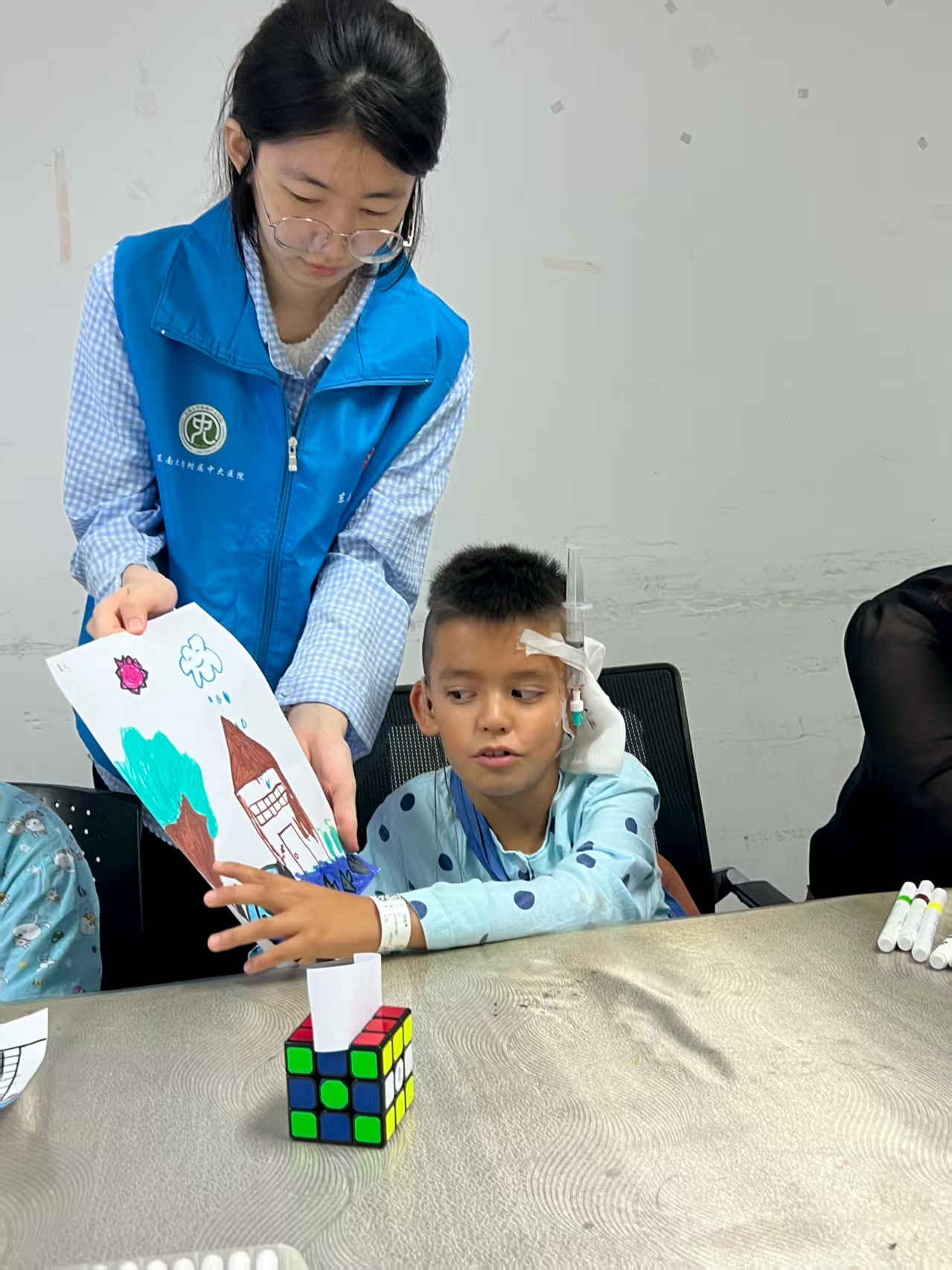 这场活动,凝聚着太多人的用心:以王磊主任、张倩婷护士长、吕影护士、章万幸医生为代表的医护人员,用专业与温柔守护着孩子们的健康;“志行青听” 团队的志愿者们,用创意与热情点亮了孩子们的暑期;家长们则用陪伴与信任,成为孩子最坚实的后盾。他们共同编织的温暖,将成为孩子们治疗路上最珍贵的记忆。