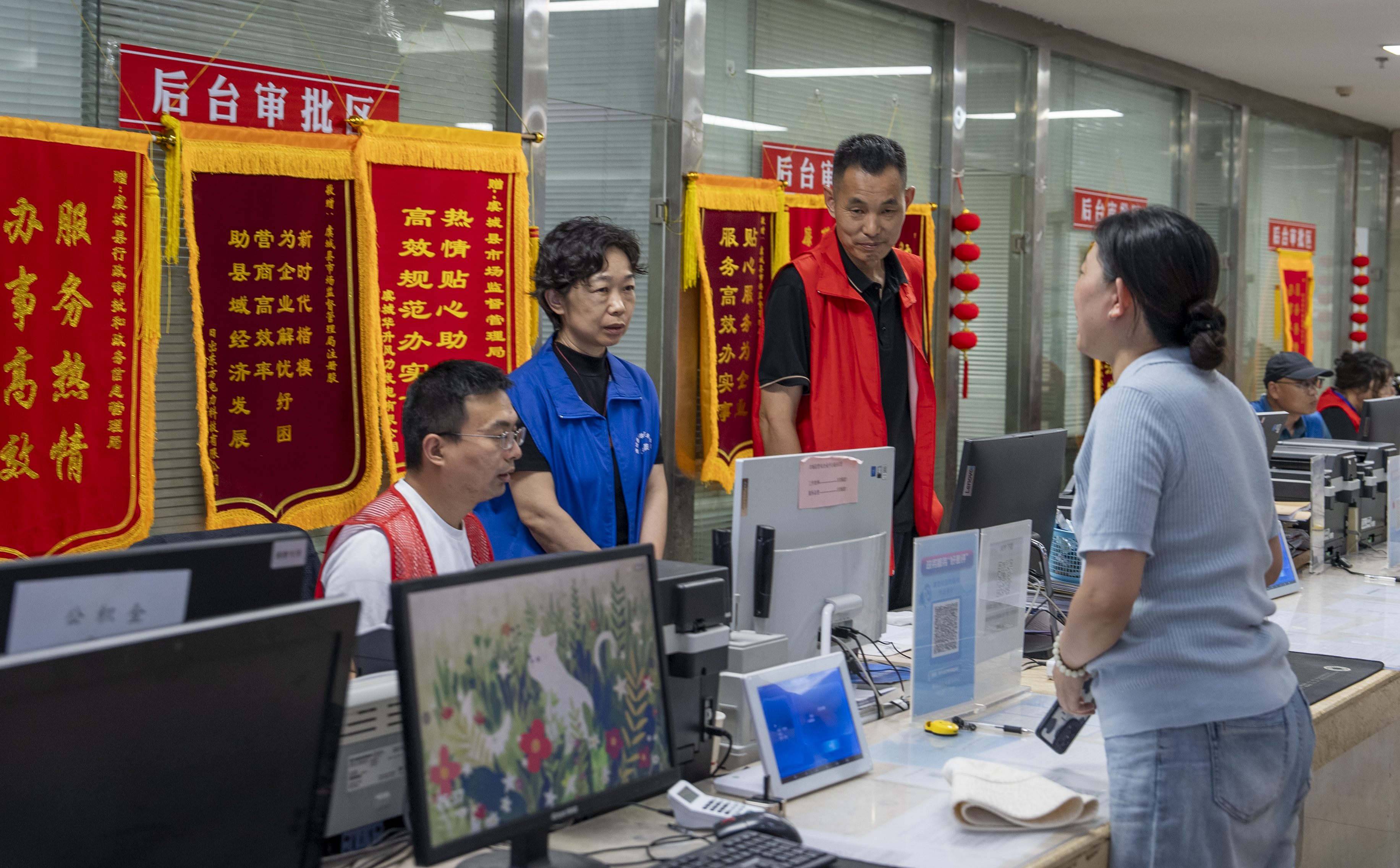虞城县政务服务中心推行“双色马甲保姆式服务”,让群众办事更便捷。 崔坤 摄