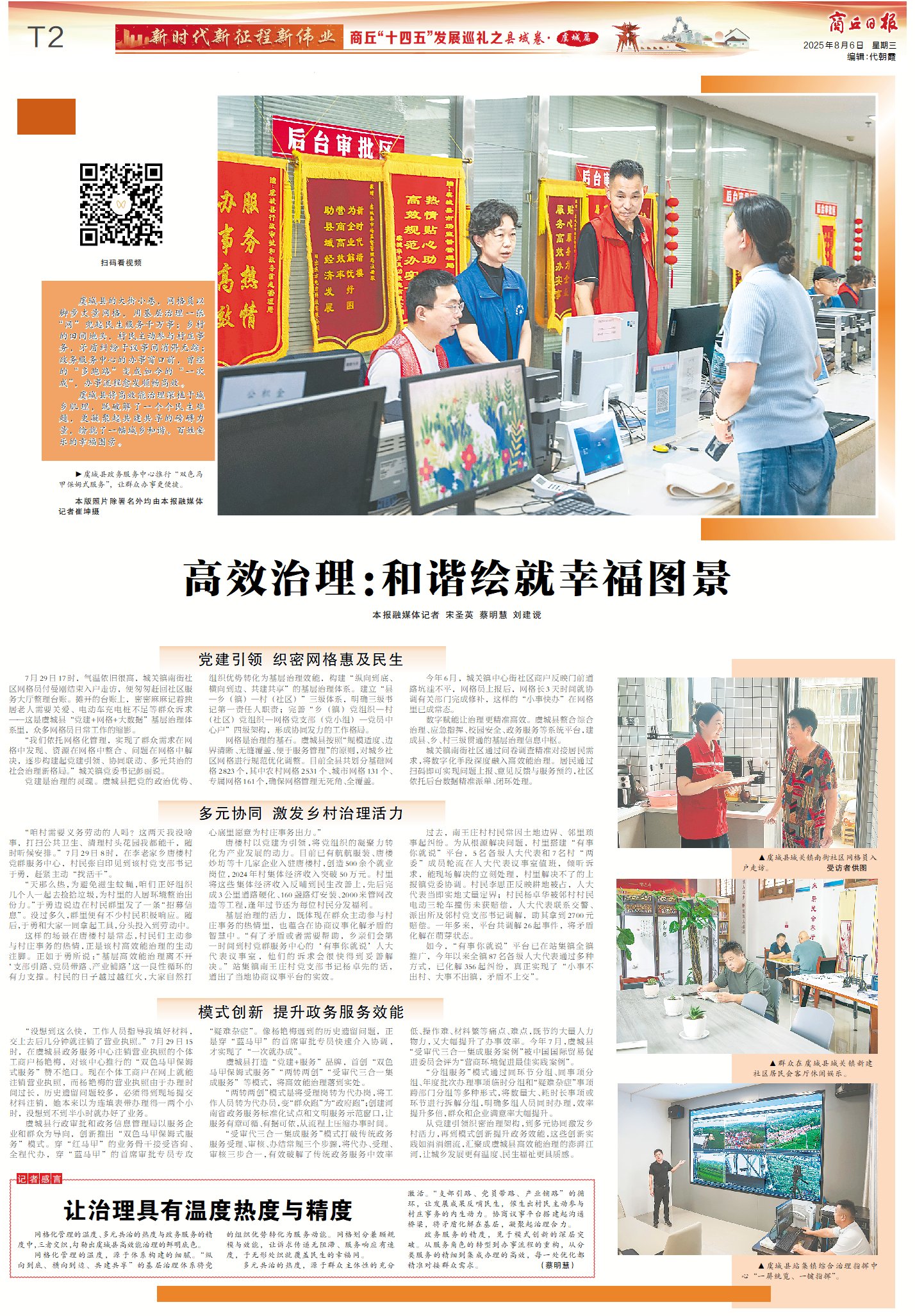 从党建引领织密治理架构,到多元协同激发乡村活力,再到模式创新提升政务效能,这些创新实践如涓涓细流,汇聚成虞城县高效能治理的澎湃江河,让城乡发展更有温度、民生福祉更具质感。